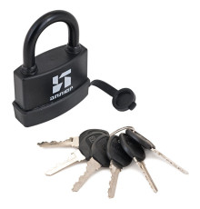 Замок навесной, всепогодный, с увеличенным количеством ключей.