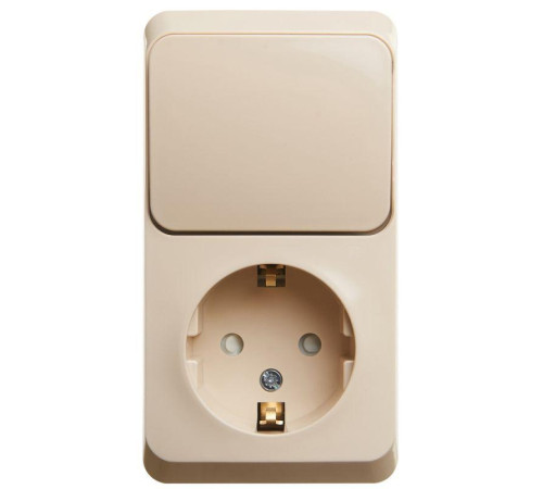 ПластикБлок ЭТЮД (кремовый, открытой установки) предназначен для применения в сетях до 250В, состоит из розетки на 16А с заземлением и шторками и одноклавишного выключателя на 10А. Он удобен в применении и отлично подходит для коридора. Заземление обеспечивает безопасность при косвенном прикосновении. Сделано в России.