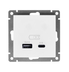 Розетка 2-м USB СП Афина 5В тип А(2.4А)+С(4А) механизм бел. Universal А0059