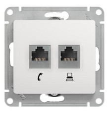 Розетка компьютерная + телефонная 2-м СП Glossa RJ45 + RJ11 кат.5E механизм бел. SE GSL000185