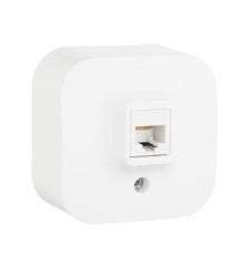 Неэкранированная компьютерная розетка настенного монтажа. Соответствует характеристикам категории 5е. Имеет 1 порт RJ-45..