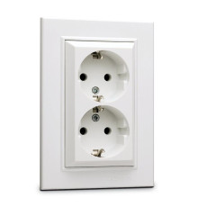 Розетка ЭТЮД (белый, скрытой установки) двухместная, с заземлением и шторками предназначена для применения в сетях до 25..