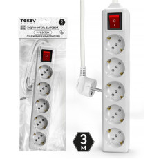 Удлинитель 5х3м с заземл. с выкл. 10А 3х1.5 TOKOV LIGHT TKL-C01-BU5-3-1.5-ZV