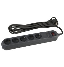 Удлинитель с сетевым фильтром 5х1.5м с заземл. 10А IP20 USF-5es-1.5m-B ПВС 3х0.75 с выкл. черн. Эра Б0019032