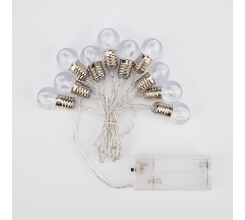 10Светодиодная гирлянда «Лампочки» длиной 1,6 метра — прекрасный вариант для оформления интерьерных предметов, находящихся в отдалении от розетки. Изделие питается от 2 батареек АА и не нуждается в подключении к стандартной электросети. Такой тип питания гарантирует безопасность в использовании. 10 декоративных лампочек излучают теплый белый свет, озаряя пространство вокруг. Гирлянда с защитой IP20 предназначена для использования в сухих отапливаемых помещениях.