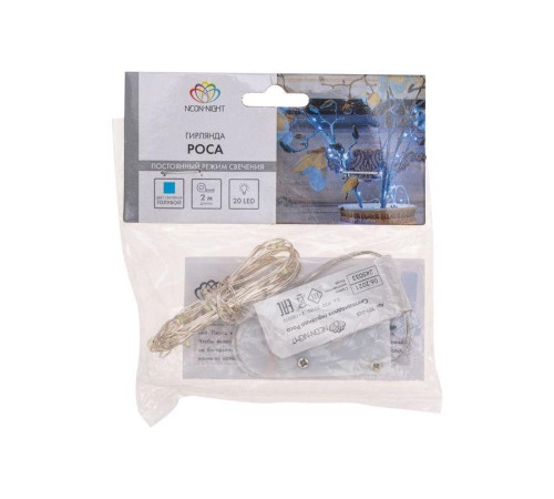20Гирлянда «Роса» длиной 2 метра питается от двух батареек типа CR2032, которые идут в комплекте поставки. Независимость от электросети дает большие возможности в создании уникального декора: изделие подходит для украшения различных интерьерных предметов, композиций и даже букетов из цветов. 20 диодов, расположенных на серебристом проводе светятся голубым. Гирлянда, подобно проволоке, имеет свойство фиксироваться в выбранном положении. Блок с батарейками находится на конце электрокабеля длиной 30 см. Изделие на батарейках, оно безопасно в использовании и подойдет для декора даже в детской комнате.