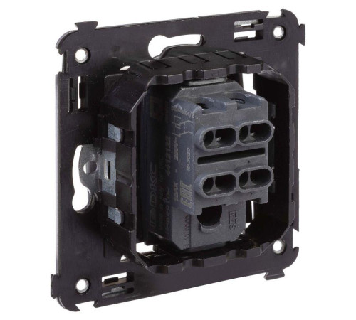 ПластикИнвертор однополюсный для монтажа в стену. Предназначен для монтажа в подрозеточные коробки (код 59301). Используется для включения/выключения освещения с трех и более мест. Диаметр отверстий для ввода кабелей – 3 мм (по 2 отверстия на одну клемму); винтовые зажимы; фиксация в подрозеточную коробку при помощи саморезов. Шаблон для зачистки кабеля – 11 мм. Номинальный ток – 16 A. Номинальное напряжение – 230 В. 2 модуля. Цвет: "Черный матовый".