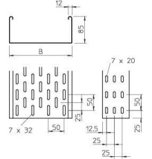 Листовой лоток с перфорацией БАЗОВОЙ СЕРИИ - высота борта 50 мм, ширина секции 400 мм и длина 3000 мм, используется для ..