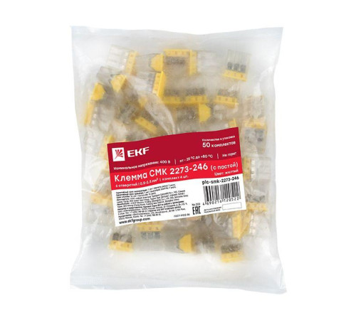 .5...2.5Клеммы СМК с пастой EKF PROxima предназначены для присоединения и ответвления однопроволочных проводников из меди и алюминия или многопроволочного медного провода