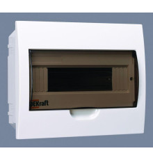 СтальЩит распределительный серии ЩРН DEKraft; навесной; номинальный ток до 125 А; исполнение – 36 мод. х 18 мм, 3 ряда; ВхШхГ - 520х300х120 мм; материал – сталь; цвет - серый (RAL 7035); степень защиты - IP31. Щиты ЩРН имеют встроенные DIN-рейки для модульной аппаратуры, элементы крепления шин N и PE, болты заземления на дверце и на корпусе, дверь с замком и ключом. Доступ к токопроводящим частям закрыт съемной фальшпанелью. Ввод кабелей для всех щитов осуществляется сверху или снизу.