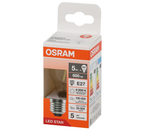Лампа проработает долго: срок службы - 25000 часов, 5 года гарантии. Светодиодные лампы OSRAM - умный выбор для здоровья семьи и кошелька!