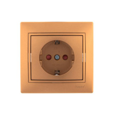 Розетка 1-м СП Mira 16А IP20 с заземл. защ. шторки со вставкой керамика зол. метал. LEZARD 701-1313-124