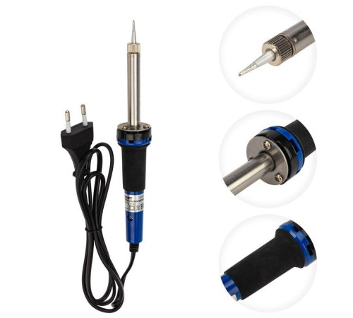 Паяльник выполнен с керамическим нагревательным элементом, поэтому нагревается быстрее, чем нихромовый и при бережном отношении прослужит много лет. Долговечное жало паяльника состоит из медного сердечника, покрытого слоем электролитически осажденного железа. Рабочая часть жала электрохимически покрыта слоем олова (что обеспечивает облуживаемость), а остальная поверхность — хромирована.