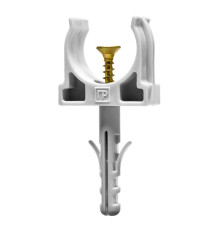 Держатель для труб (клипса) d20мм с дюбелем и саморезом сер.Промрукав PR13.0216