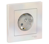 Нет (без)Розетка Systeme Electric (ранее Schneider Electric) серии AtlasDesign (в сборе, цвет сталь) одинарная с заземлением и без шторок подходит для сетей 250 В, на ток 16 А.