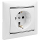 Представляет собой одноместный модуль розетки, со стороной 71 мм, с защитным контактом стандарта SCHUKO. Изготовлен из пластика, с необработанной поверхностью, белого цвета. Монтируется под штукатурку.