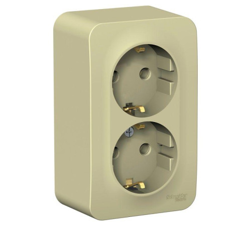 43Розетка BLANCA (открытой установки, цвет бежевый) двухместная с заземлением и шторками, с изолирующей пластиной подходит для сетей 250 В, на ток 16 А.