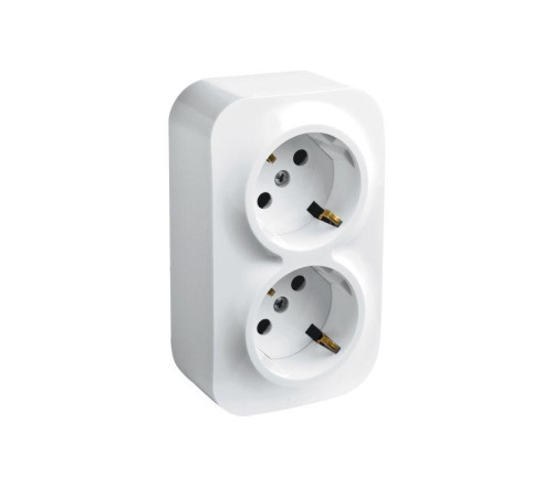 65Двойная розетка с заземлением, со шторками Legrand Quteo, цвет белый, для открытого монтажа. Максимальный ток 16 А, максимальная мощность 3680 Вт. Применяется в зданиях, оборудованных для повышения безопасности проводкой с заземлением (с защитным проводником). Рекомендуются к применению в помещениях в которых могут быть дети. Шторки осуществляют защитную функцию путём ограничения доступа к токоведущим контактам. Доступ открывается только при подключении вилки.
