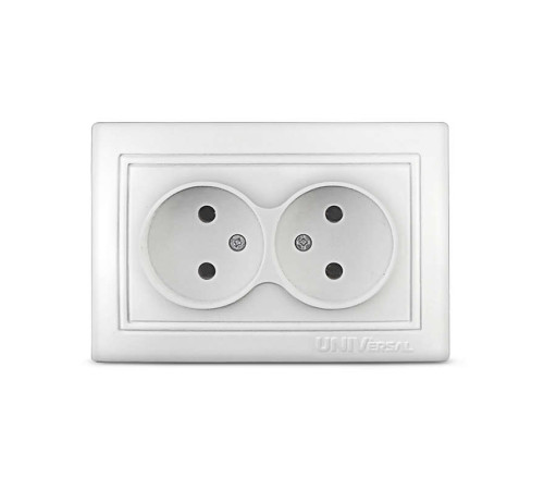 Без защитного контактаРозетка 2-м СП Севиль 16А бел. UNIVersal С0102 для скрытой установки сочетает в себе лаконичный дизайн с законченностью формы. Изделия данной серии удачно вписываются в обстановку любого помещения и формируют оригинальные акценты в интерьере.