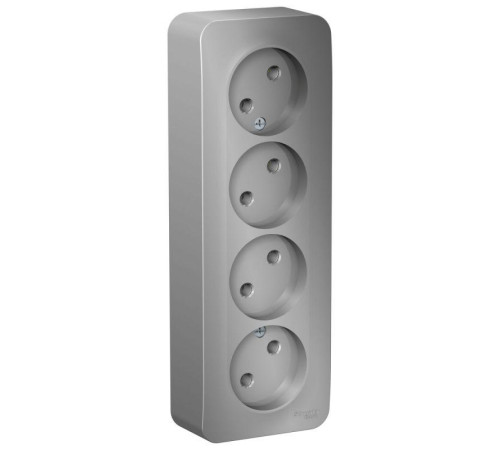 33Розетка BLANCA (алюминий, открытой установки) четырехместная, без шторок и заземления, с изолирующей пластиной предназначена для сетей до 250В, на ток до 16А. четырехместная розетка позволяет подключить четыре устройства в одном месте. Она изготовлена из ABS-пластика, проста в установке и удобна в применении.