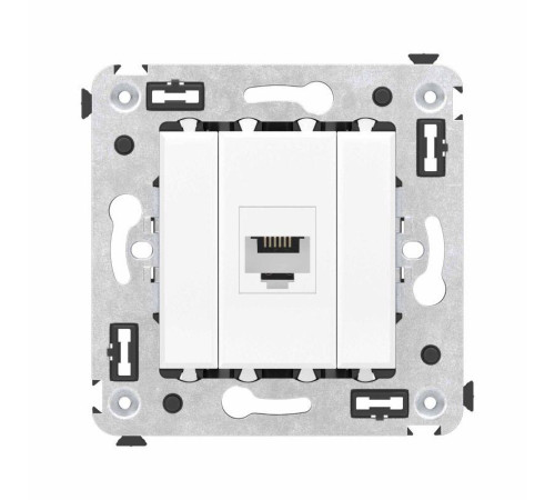 Скрытой установкиТелефонная розетка RJ-12 без шторки используется для коммутации линий телефонной связи в патч-панелях или для связи телефонных аппаратов с розеткой. Предназначена для скрытого монтажа в стену, поставляется в комплекте с суппортом. Материал – металл, термопласт. Пластиковые детали электроустановочного изделия имеют цвет "Белое облако".