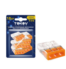 Клемма строительно-монтажная СМК 222-413 PCT-213 3-проводная с рычагом (блист.10шт) TOKOV ELECTRIC TKE-PCT-213/BL10