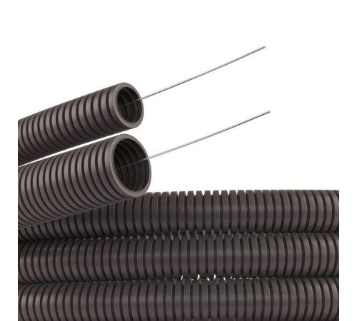 12Гофрированные трубы из полиамида рекомендуется прокладывать в пустотах фальш-полов и фальш-потолков, по несгораемым и трудносгораемым основаниям (открыто), а также внутри корпусов оборудования и по ним. Трубы устойчивы не только к воспламенению, но и к воздействию ультрафиолета, а потому для их прокладки не надо организовывать особые условия, чтобы защитить их от воздействия солнечных лучей. Номинальный диаметр 12 мм (это означает, что внутренний диаметр трубы - 12,2 мм, а наружный - 15,8 мм). Специальная протяжка, входящая в комплект, облегчает прокладку кабеля по трубе. Цвет трубы - темно-серый.