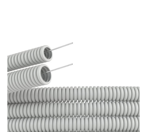 16Гибкая гофрированная труба из ПВХ надежно защищает кабель от механических воздействий. Используется для прокладки электрического, компьютерного телефонного кабелей. Труба этого типа прокладывается в стенных штробах, в пустотах фальш-потолков и фальш-стен, в стяжке полов или под фальш-полами. Проволочная протяжка облегчает прокладку кабеля в трубе. Диаметр - 16 мм. Материал – самозатухающий поливинилохлорид (ПВХ). Цвет - серый. Гофрированные трубы из ПВХ легкой серии могут эксплуатироваться при температуре от – 25 °C до + 60 °C. Длина – 50 метров.