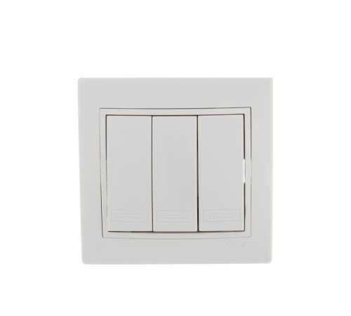 Выключатель 3-клавишный это двухпозиционный коммутационный аппарат с замыкающими (нормально-разомкнутыми) контактами, предназначенный для работы в сетях с напряжением до 1000 вольт, не предназначенный для отключения токов короткого замыкания, без специальных устройств дугогашения, местного управления, с ручным приводом.