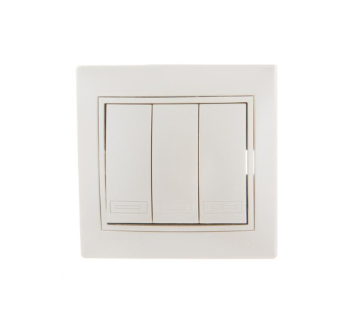 Выключатель 3-клавишный это двухпозиционный коммутационный аппарат с замыкающими (нормально-разомкнутыми) контактами, предназначенный для работы в сетях с напряжением до 1000 вольт, не предназначенный для отключения токов короткого замыкания, без специальных устройств дугогашения, местного управления, с ручным приводом.