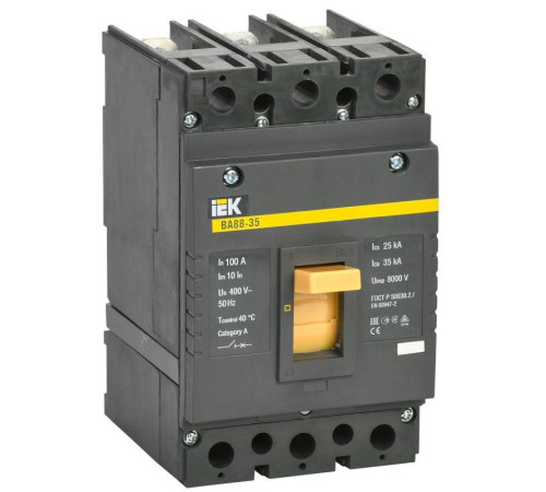 ДаАвтоматические выключатели ВА88 предназначены для проведения тока в нормальном режиме и отключения тока при коротких замыканиях, перегрузке, недопустимых снижениях напряжения, а также для оперативных включений и отключений участков электрических цепей и рассчитаны для эксплуатации в электроустановках с номинальным рабочим напряжением до 400 В и на номинальные токи от 12,5 до 1600 А.