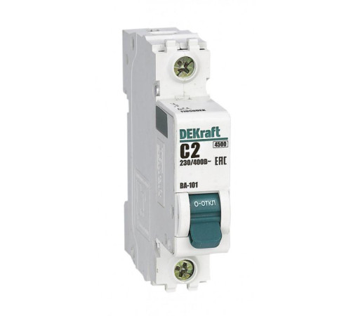 1Автоматический выключатель серии ВА-101 DEKraft; 1P; номинальный ток 2 А; характеристика С; отключающая способность 4,5 кА. Новый механизм расцепления мгновенно разрывает цепь при возникновении аварии. 5 монолитных заклепок повышают прочность корпуса аппарата. Сплошная лицевая панель обеспечивает безопасность эксплуатации аппарата. Боковые каналы охлаждения повышают стабильность работы при высоких температурах окружающей среды. Полностью автоматизированный контроль качества производства.