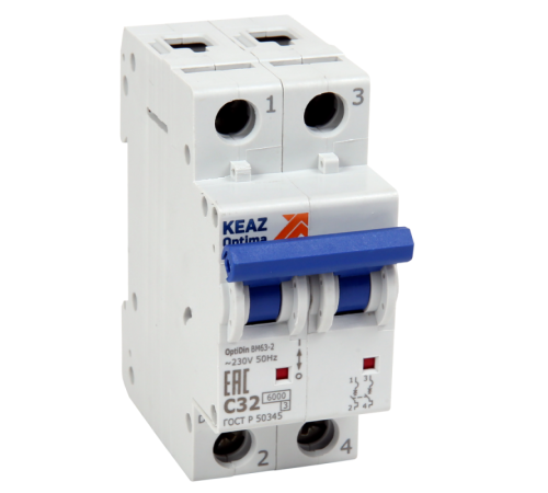 6Модульный автоматический 2 полюсный выключатель переменного тока с предельной коммутационной способностью при переменном токе 6 кА на номинальный ток 3 А .