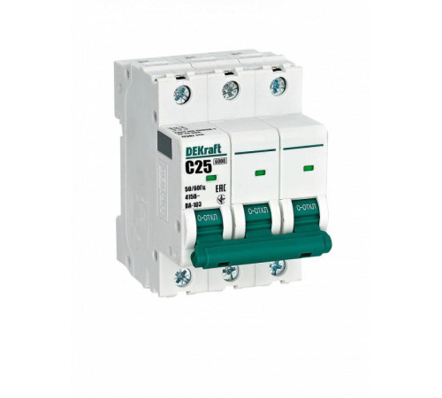 500Автоматический выключатель серии ВА-103 NEW DEKraft; 3P; номинальный ток 25 А; характеристика C; отключающая способность 6 кА, что позволяет использовать аппараты в качестве вводных. 5 монолитных заклепок повышают прочность корпуса аппарата. Окошко-индикатор всегда показывает состояние контактов вне зависимости от положения рукоятки управления. Боковые каналы охлаждения повышают стабильность работы при высоких температурах окружающей среды. Есть возможность установки дополнительных аксессуаров с левой стороны устройства. Аппарат на 100% совместим с корпусами и оболочками DEKraft, Systeme Electric.