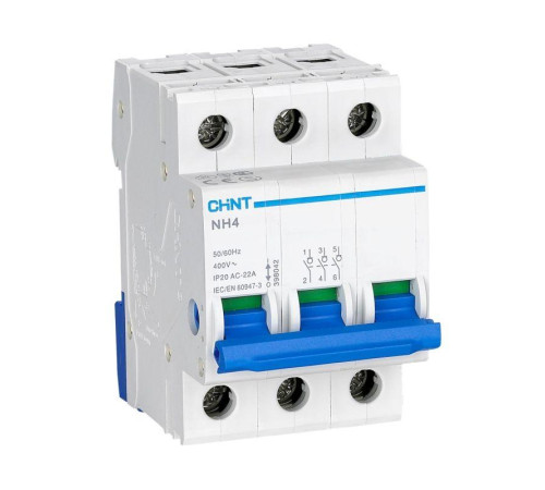 50Выключатели нагрузки NH4 применяются в электрических цепях с напряжением 240/415 В и частотой 50/60 Гц, с номинальным током до 125 А. Они предназначены оперативного управления участками электрических цепей, находящихся под нагрузкой, во вводно-распределительных щитах жилых