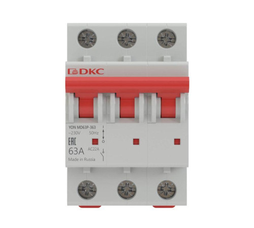 БелыйМодульный трехполюсный выключатель нагрузки YON MD63P номиналом 63 A предназначен для применения в электрических цепях напряжением до 400 В переменного тока частоты 50 Гц, проведения тока в нормальном режиме и оперативного включения и отключения указанных цепей.