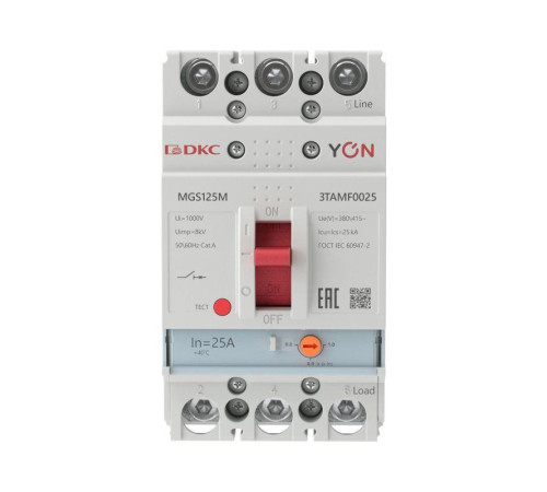 380...415Автоматический выключатель в литом корпусе "YON MAX" MGS125M-3TAMF0025 со значением номинального тока In 25 А и отключающей способностью Ics 25 кА применяется в сетях низкого напряжения до 415 В. Аппарат используется для рабочих включений и отключений нагрузок и для защиты от перегрузок и коротких замыканий. Автоматические выключатели в литом корпусе "YON MAX" серии MGS используются при строительстве и модернизации многоквартирных жилых комплексов, административно-коммерческих центров и объектов социальной инфраструктуры. Преимуществами автоматических выключателей в литом корпусе "YON MAX" серии MGS являются регулируемый тепловой расцепитель, разнообразие ассортимента для реализации любого проекта электроснабжения, надежная защита и долговечность, удобный монтаж и гарантия производителя 5 лет